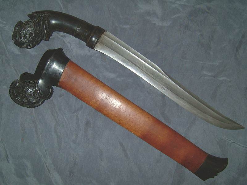 Could the origin be discovered with the sheath style and the pommel style? I hesitate to use that since there's a lot of common hilt styles in Indonesia, for example my favorites - the makara pommel-ed pedangs and klewangs that are attributed to east Sumtra and Lombok... this one looks similar Thanks for the added info kai and Rick. :) Is "piso" the same as "pisau"? and on a side note... "piso podang" - is the piso the same piso as kai referred to (knife)? And is "podang" simply another spelling of pedang? Iknow it might be common knowledge for Indonesian traditional weapon gurus, but I just wanted to clarify that for myself..Thanks! |