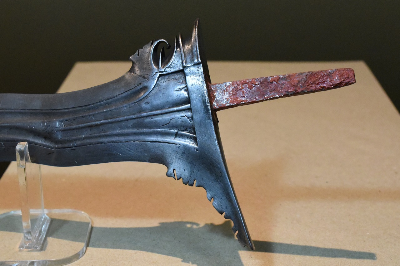 I have an example of similar style with a traditional waved blade. Interesting to see how short the tang is on these swords. My blade seems to have a significant chrome content as it behaves like stainless steel. I've had it lying around for 15+ years and no sign of corrosion. . |