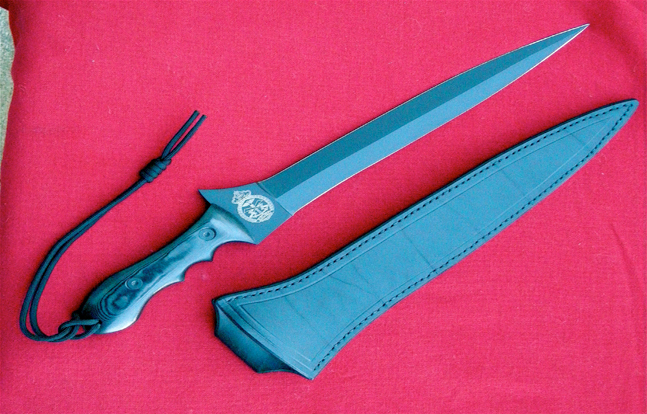Interesting that the photo in the OP's ref. link of the Philippine Armed Forces use of the kris/kalis is actually of their Marines using their ginuntings, with their cross guard and knuckle bow...The photo file title also lists it as Phil Mar Reco (Philippine Marine Recon). A whole other kettle of fish. A 'tactical' black version below (they also come in polished and longer and also guardless or knucklebowless versions. No Brunei connection. Marketing puffing?