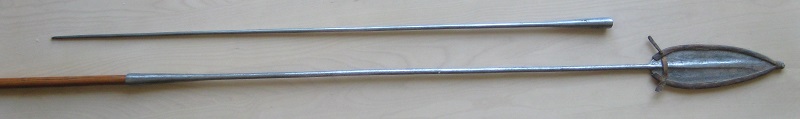 Here a somewhat blurry pic of the wooden part of a lion spear I have here at the moment. |