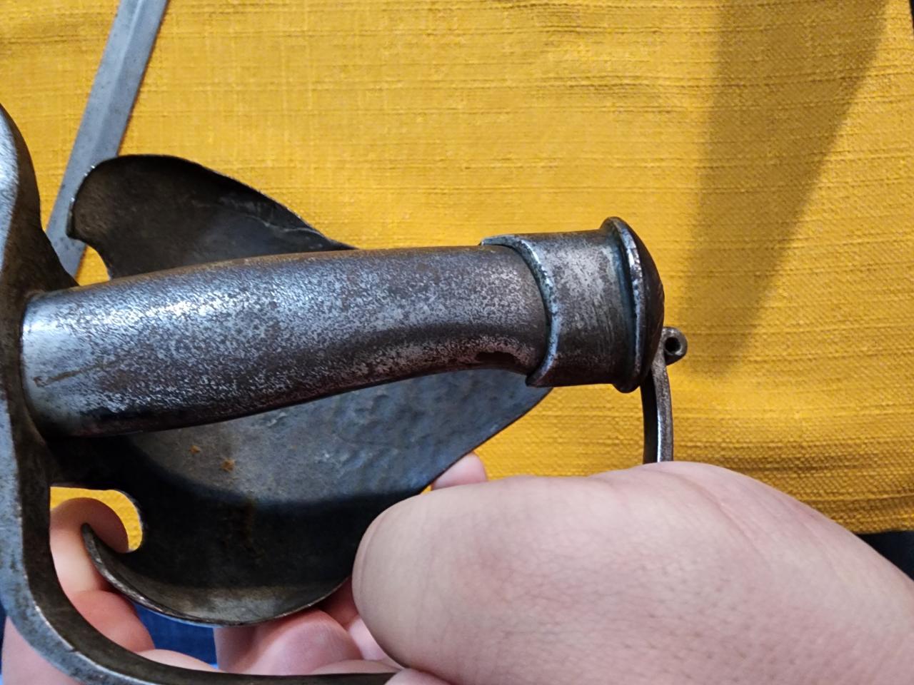 A few final thoughts on the chiseled hilt rapier. Balance is surprisingly quite nice. Balance is just forward of the grip. It appears there was another half shell that has since broken off, the fracture face has been covered in some sort of tin braze I think, hence the odd surface finish at that location. There was a sticker with collection number under the remaining guard. The schiavona pommel may not be strictly correct to the sword, but is actually really very nice. Attachment 239840 To my surprise, the marine saber may be my favorite. It feels very nice in the hand. Very good balance. Definitely a "knife work" ready sword. The blade also has a very nice false edge on the clipped point. Needs a good tooth brush cleaning and oiling to prevent red rust. The grip to my surprise isn't wood at all but is a cast (I'm assuming) grip. Maybe from a later saber or cutlass? It looks like the pommel cap which is a separate piece, fits it perfectly, so likely went with that grip. I'll see if I can find a match. All in all, I'm very happy. 10/10 would board Ottaman galley with this in hand. Attachment 239836 Attachment 239837 Attachment 239838 Schiavona is still nice but maybe the weakest of the four. I've never held anything "munitions grade" from this time period, but I imagine it feels just like the schiavona. Balance feels way too heavy for the size. The blade is almost certainly shortened. The thickness of the edge towards the tip is far to thick and doesn't match the edge thickness towards the grip. Blade still tapers in thickness from ricasso to tip but not enough to be comfortable. This one I will probably part with to further the collection. Attachment 239839 |