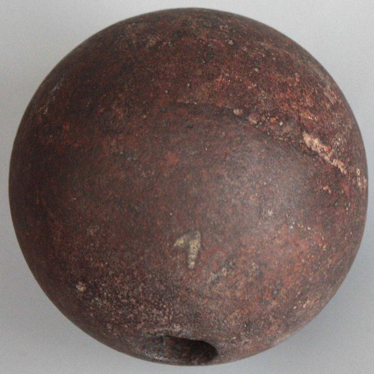 Diameter = 4.625" (Nominal = 4.52”) Wall thickness = 0.91” Volume = 1 Cup (250ml) (inside volume: to base of fuse opening) Weight = 8.75 lbs (Nominal = 8.34) Attachment 250606 Attachment 250607 I had a fairly active interest in artillery at one time. This is a 12pdr. shell. A wood bung with a fuse inserted would be forced into the hole. You can see the parting line from the molding process in the second picture. It is a bit of a challenge teasing more than one photo out of a round hunk of metal. I hope you approve of my efforts. I have looked for marks on this object but it is a bit of a Rorschach after staring at it for an extended period. Suffice it to say there is nothing glaringly obvious. |