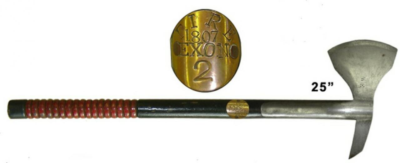 I always assumed that naval boarding axes came first and evolved into or were repurposed as fire axes as their use at sea declined and fire brigades formed. The 1859 British Boarding axe is, I have recently discovered, directly copied from a fire axe from around 1807. Steam and steel rapidly replaced sail throughout the century, but it was not a clear cut change. For example HMS Warrior (1860) was an iron hulled steam powered frigate but she still carried significant sails and with her propellor raised out of the water could make 12 knots under sail. The amount of coal that could be usefully carried restricted her operating range so sail was still necessary for longer voyages. The above explains why the British Government introduced a new model of boarding axe in the middle of the 19th century and were still supplying them as late as 1898. Axes were needed as although wooden decks may have disappeared there was still a large expanse of canvas, masts, spars and rigging that may be brought down under combat conditions. Here is an 1859 model boarding axe made by Charles Thomas (1898): Attachment 251463 And this the fire axe from which the model was copied. There are very few extant examples of this fire axe but two are known, marked to the Exeter Fire Brigade and dated 1807. In the early part of the 19th century local fire brigades were established by insurance companies to protect property insured by them. The West of England Fire Insurance Company was set up in 1807 and established several fire brigades in the area. Of which Exeter was one. Exon(iensis) is from the Latin name for the city. (With thanks to Mr Ron Long an expert on the history of Fire Fighting equipment.) Attachment 251462 |