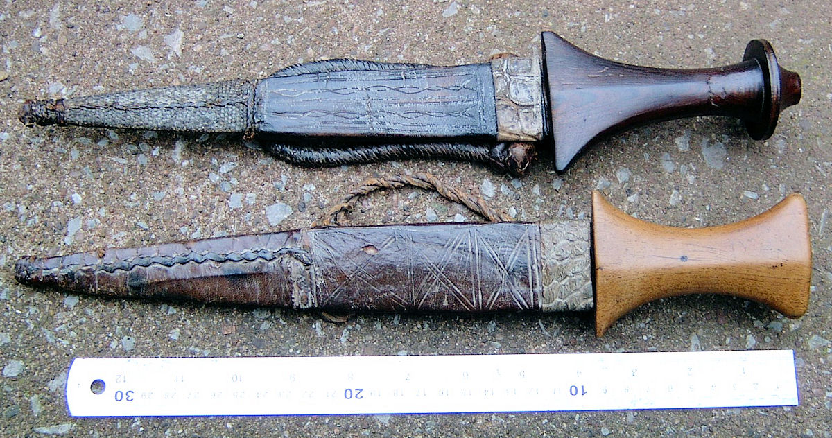 Two daggers for your consideration. On the large side for these, both are over 1' long in their scabbards. Came from an estate sale and have apparently always been together. Dark hilted one is quite tight in the scabbard but does go in and out OK. They have good age, sharp rigid double edged blades with central ridge on both. Signs of use and sharpening/file marks. All other details see pictures. Swaps for anything that takes my fancy! Tell me what you've got? Sale for £50 each or £90 the pair. Open to offers/PX/Swaps etc. Postage must be registered outside of the UK (at cost) £6.50 special delivery in the UK. PM me or email: gimmieitbaby@aol.com Last edited by Atlantia; 9th October 2010 at 12:57 PM. |