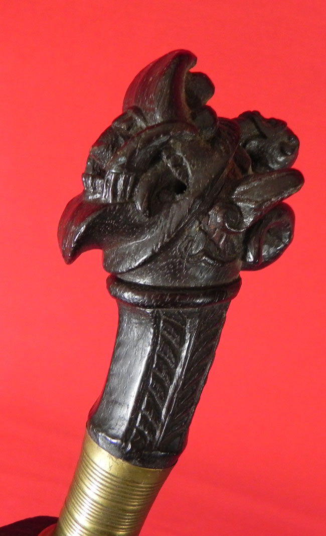 The pommel on the ebony(?)hilt seems reminiscent of the Lasara motif seen on Nias swords.