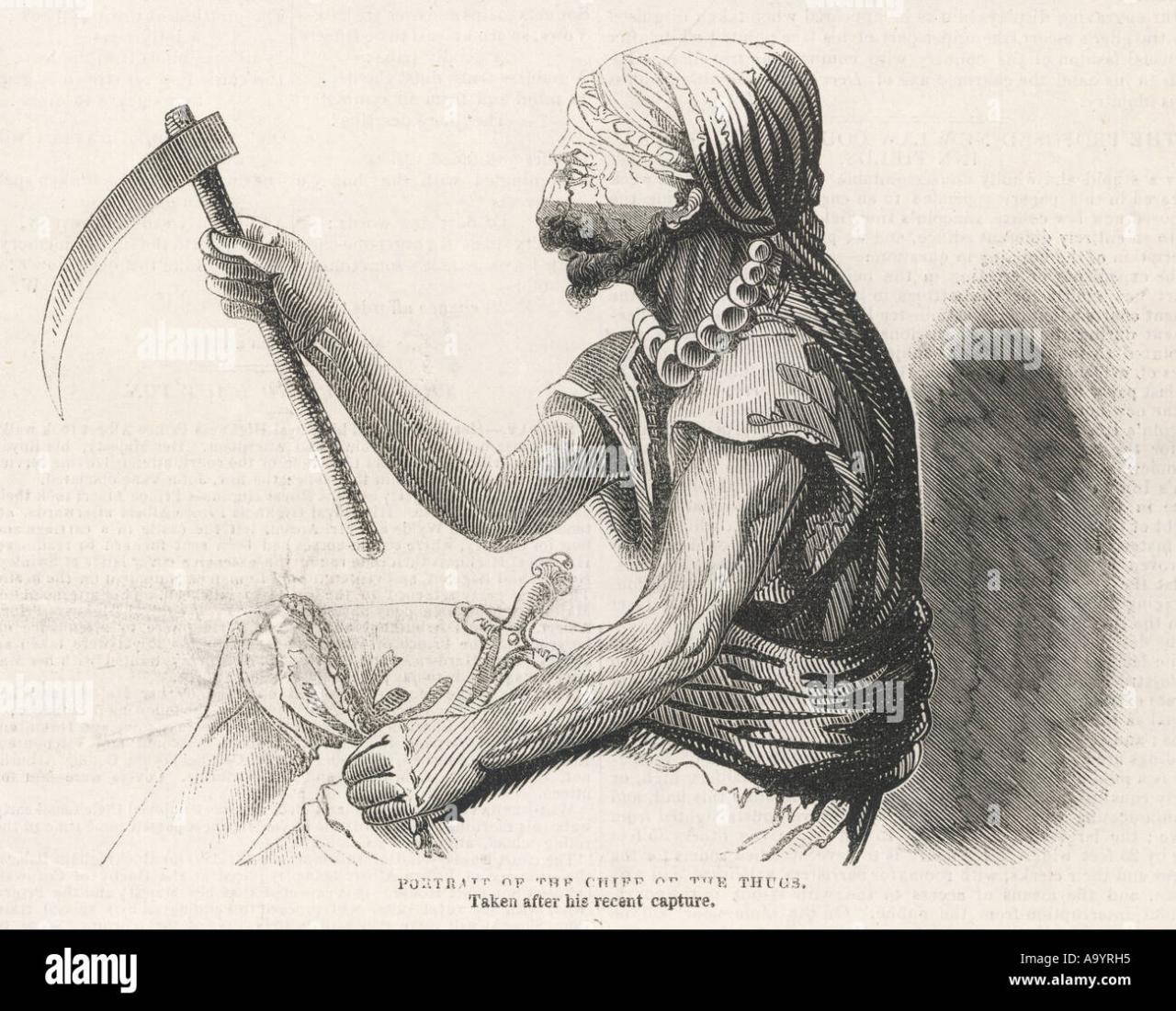 Spiral THUGGEE CHIEF 1843 Chief of the Thugs, captured by Captain Vallancey in Arcot disguised as a traveller's escort Date: 1843 |