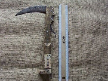 I agree, the rather distorted image of that tulwar pretty much says it on the potential accuracy of the weapons!The shape of the head on this entrenching tool seems more in line with what I picture with the thuggee form with more of a claw type shape (without the shovel of course . All the best, Jim |