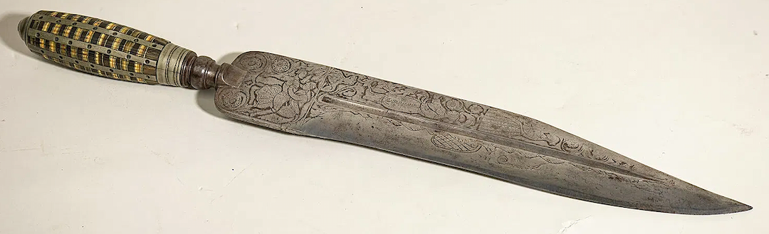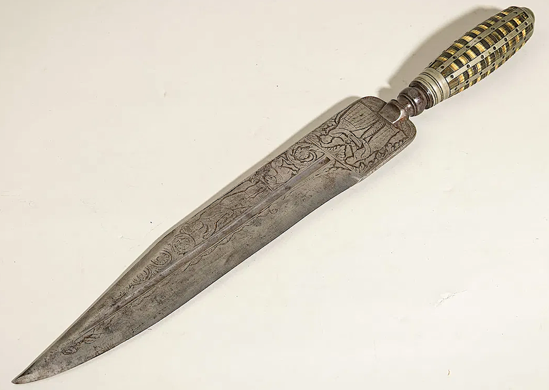 This rather nice knife sold recently at auction. It was described as an "English Renaissance Engraved Marriage Knife and Sheath." Possibly 16th-17th C.