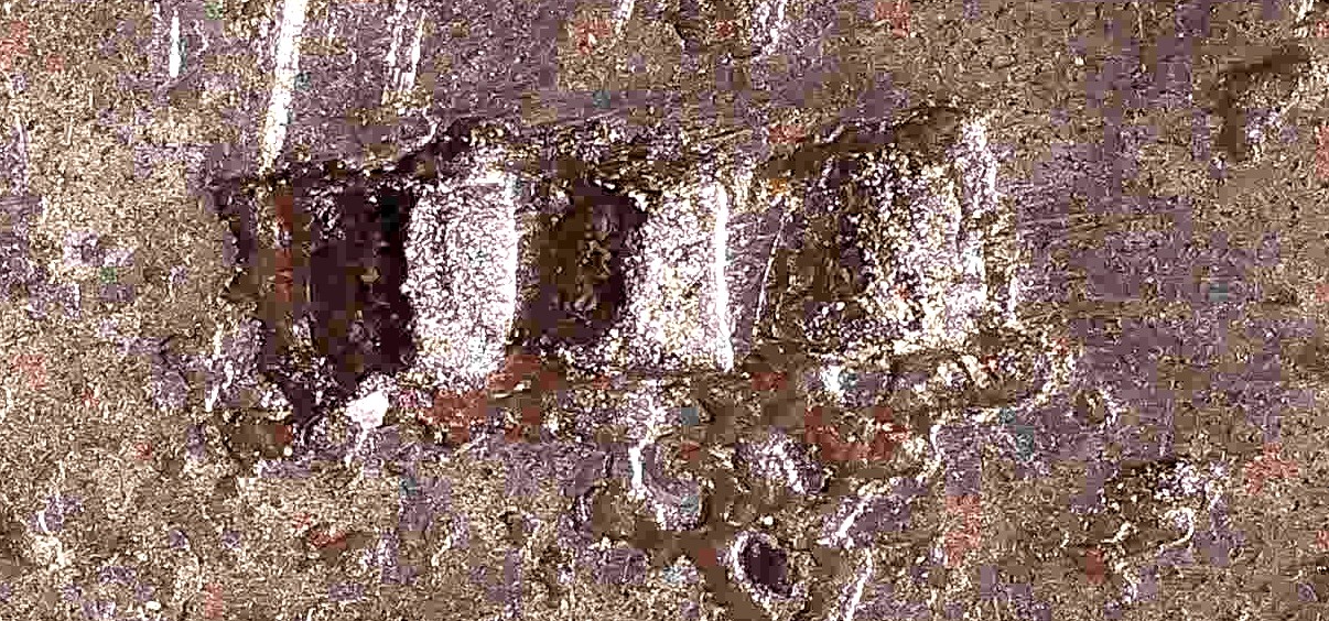 On the left side of the blade, near the guard, the photo seems to depict a square-ish mark with rounded corners. It seems to be too deliberate to be an artifact.