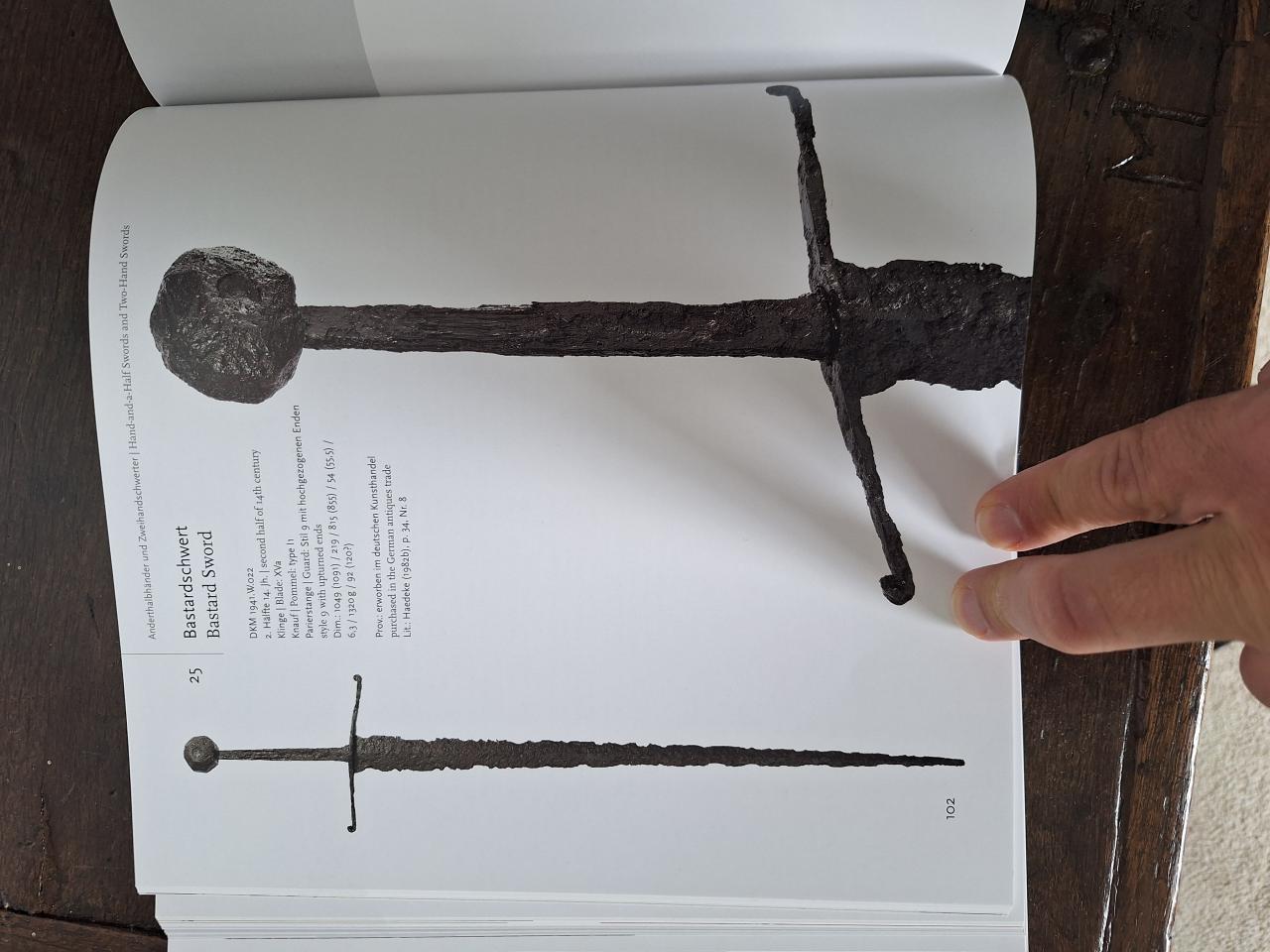 All due respect to Oakeshott, but are these pieces really that old? Yes, the pointed cross-guard already appeared among the Vikings, but to my knowledge it continued in use well into the 15th century. The pommel shape, however, seems to me to be clearly later than the 12th or 13th century. It would be great to find a contemporary depiction—that would shed much more light on the matter.
