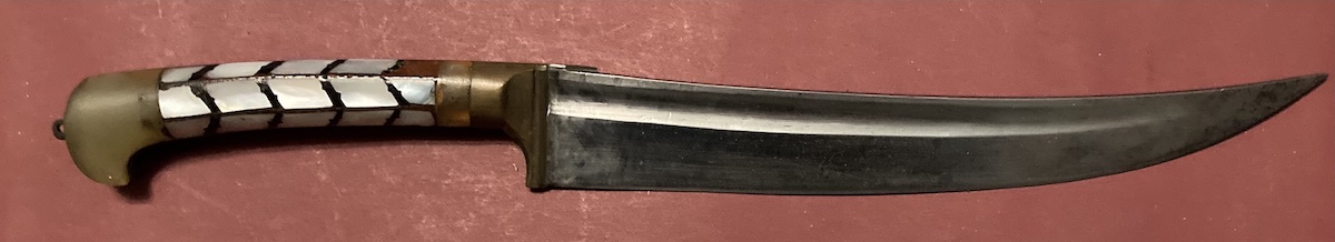 As Ian said, a nice Anglo-Indian knife. Most of the ones of this type that I have seen have curved blades like the example shown below. I don’t know if they were made for those who travel per se. Every one I have seen is well made. I think they were made for upper echelon members of the British Raj. I am hoping that the dagger I presented to start this thread is another such example, just made at the very end of the British Raj. Sincerely, RobT |