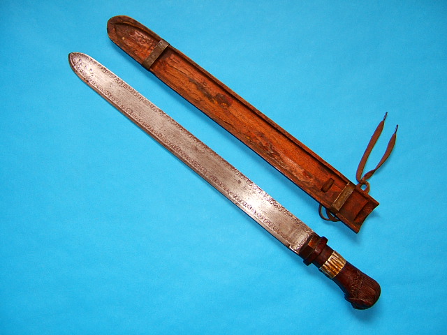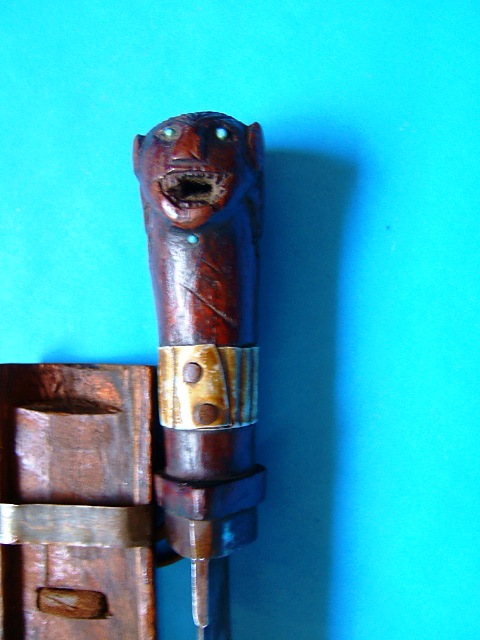 Nice 1930s-40s Bhutanese sword for sale with carved demon head hilt.