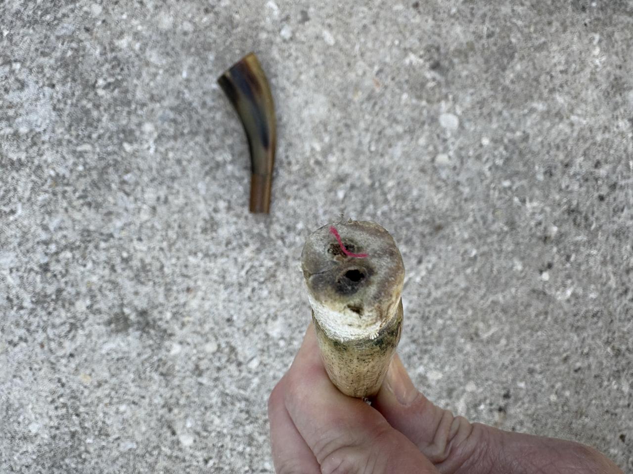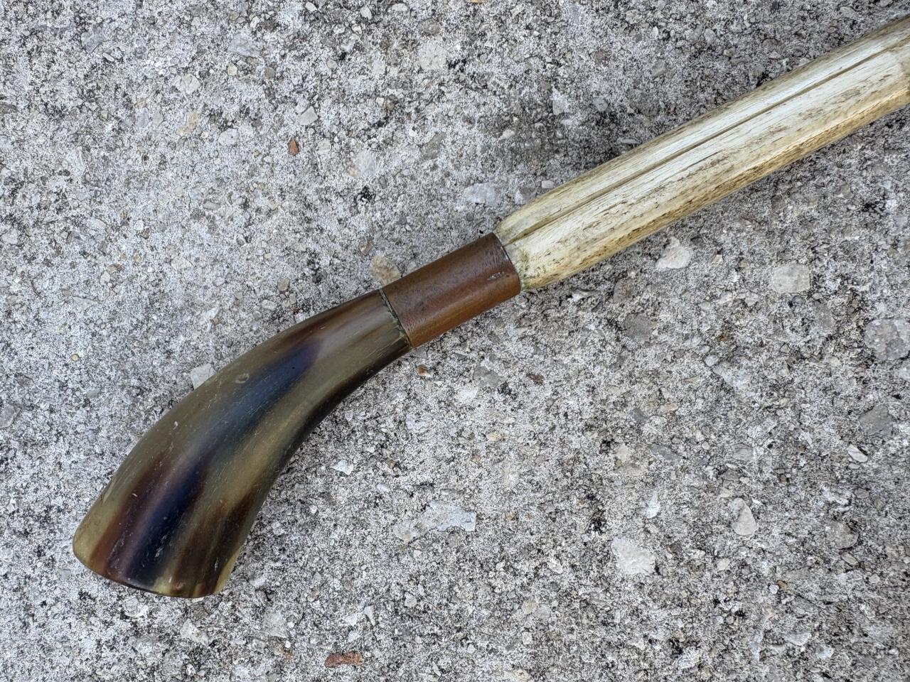 I’m curious to know where this dagger might be from. Doesn’t appear to be particularly old. I’m not sure if the “blade” is a billfish bill or perhaps mammalian leg bone? The hilt is the tip of a cow’s horn. The sleeve or ferrule is thin brass. It’s just held in by friction and is loose as you can see. Any input is appreciated - I know this may just be a curio or knickknack!