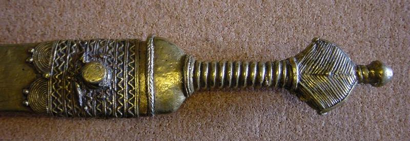 Colin, no help here but the bronze work is beautiful and the blade looks very strong and not of the quality typically found in African knives. Congrats.