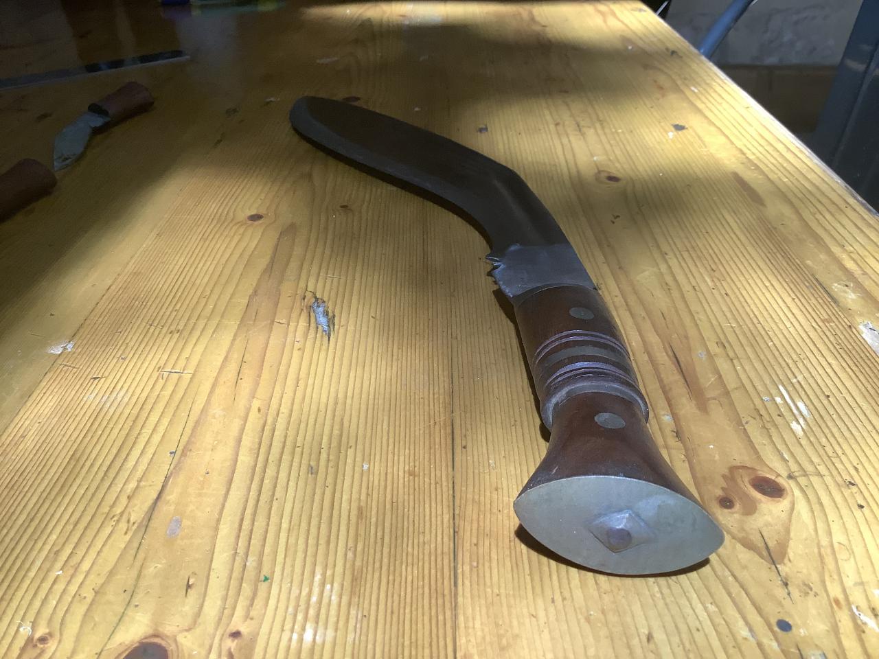 they are thinner than the original kukris, being cut from steel plate. 5-6mm normally . in fact you can get the same models with the metal bands on the handle going back to ww2 made in india but the blade son the older knvies are much better... yeah tis say 1980s or so , these days the sheath is more crudely made. |
