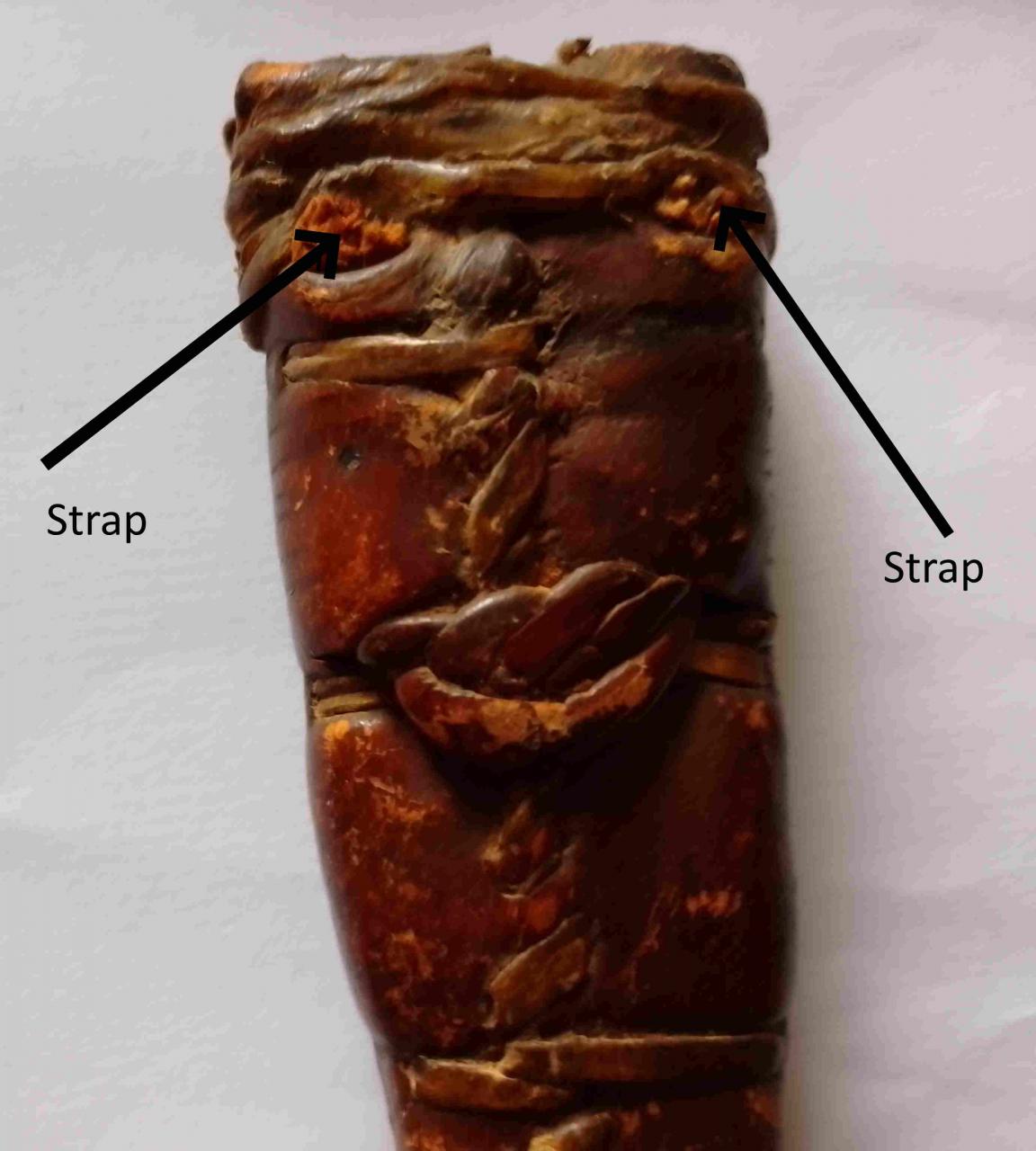 on the reverse of the scabbard, the strap is missing (torn off).