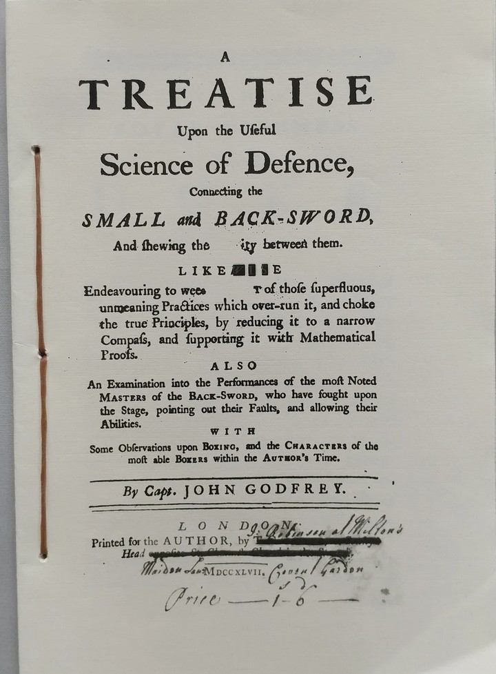 The book describes the use, positioning and observations of the 18th century. Also including a discussion of the prope techniques and methods of boxing As it is free of copyrights, their are legal downloads available https://archive.lib.msu.edu/DMC/fenc...fuldefense.pdf Last edited by gp; 24th September 2025 at 11:02 AM. |