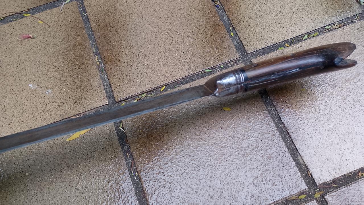 The central Asian/Afghan shashka style with a wider handle with 5 or 7 pins and without wars. Identical in handle to some peshkabz handles better but it's generally a heavy blades slow choppy weapon.