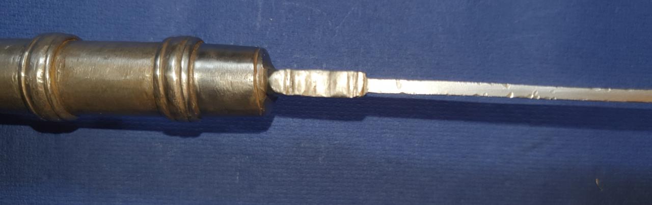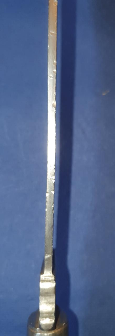 46,7 cm long overall, blade with ricasso 29 cm, blade 3,75 mm thick at the spine behind the ricasso. 487 gram. Asking price is 350,- Euro plus shipping. Contact me by email: deuterdetlef@gmail.com |