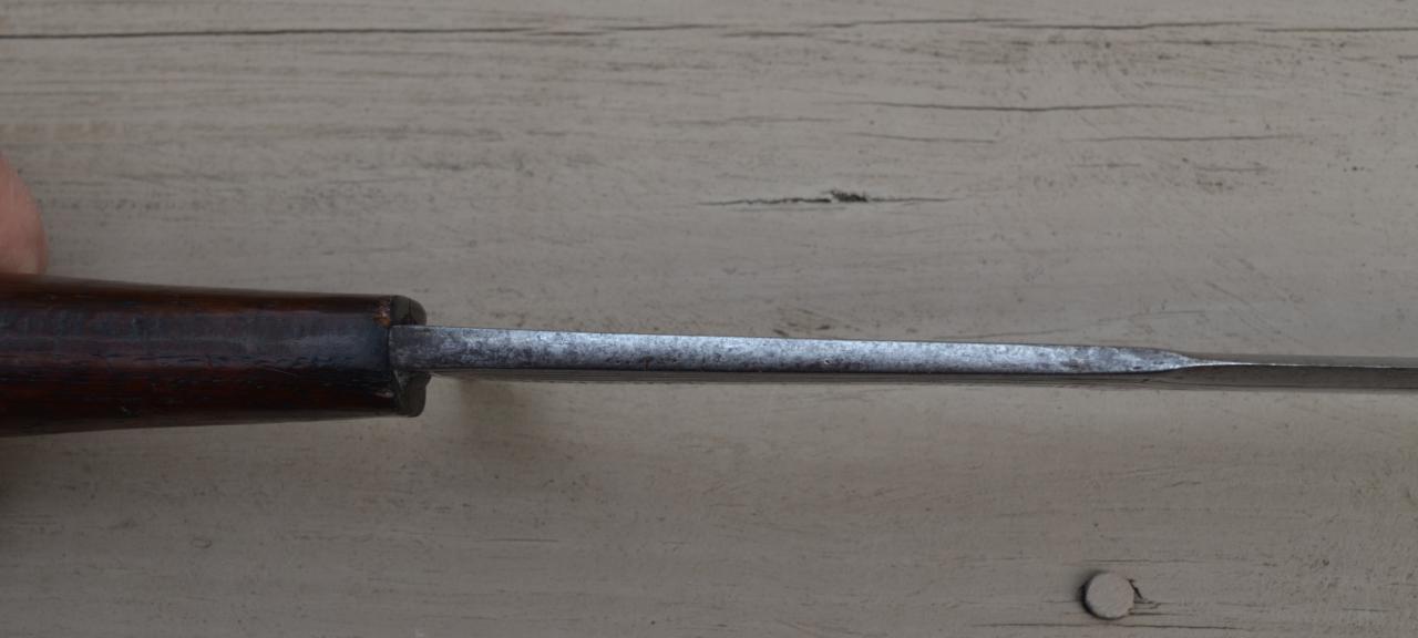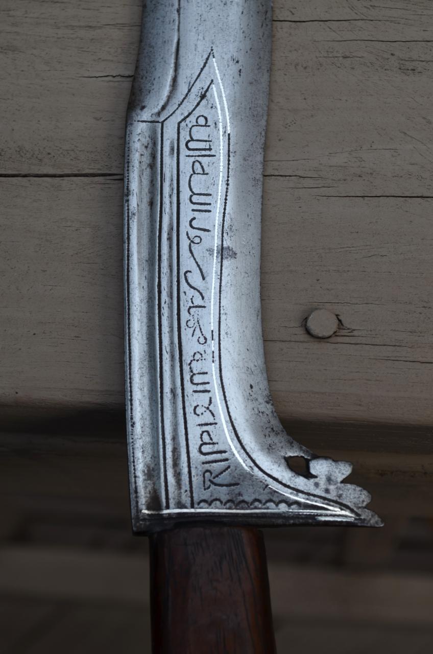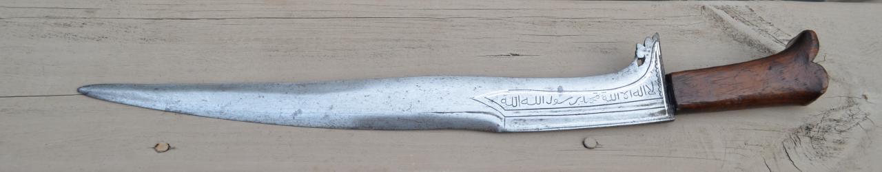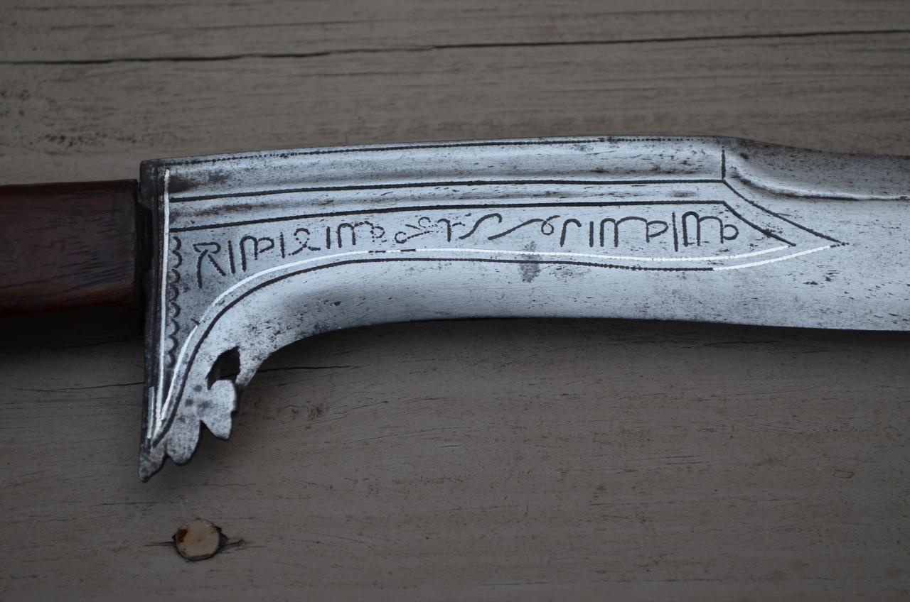 I recently acquired this knife that is a composite. The blade looks like it could have been a Kris at one time or another and it has traces of silver inlay.
