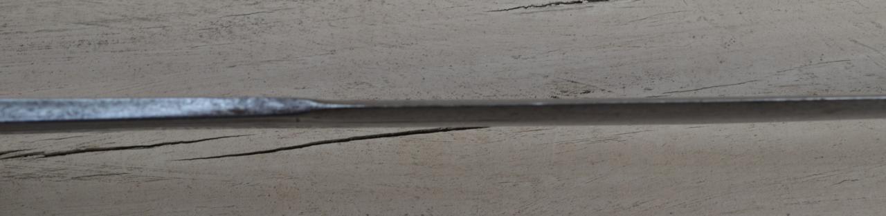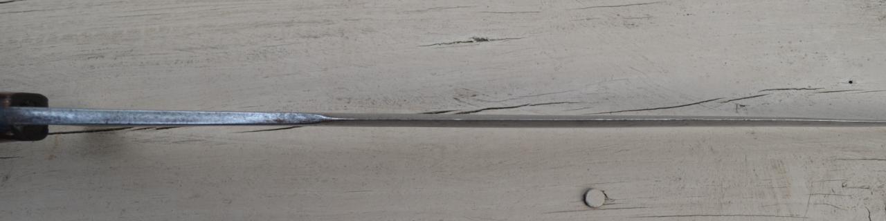 It is attached to a basic wooden handle. The blade measures 14" long. |