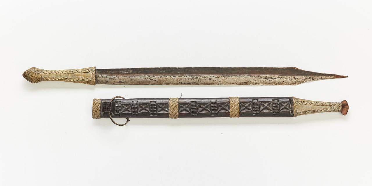 Hello, I bought this bakatwa at an auction (it's about 78 cm long and you can see it in the first photo). A few days later, while searching online for information on this type of sword, I found one that I think is almost identical, on display at the Pitt Rivers Museum in Oxford, England (the second photo, low quality).