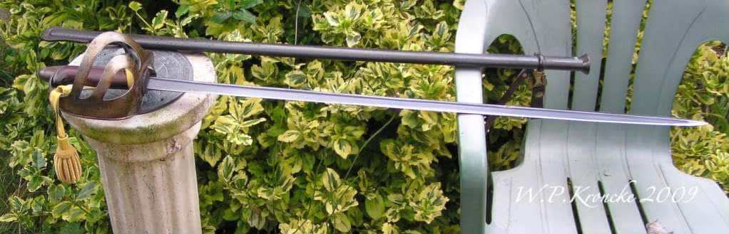 My 1871 Italian Mounted Artillery Officer's sword (top) UK Army and Navy in the early 19c tied pipe backs, the navy feathered tip version didn't last long. The cavalry version was found to be too flexible when trying to thrust into opposing Russian cavalry in the Crimean war 1853-1856. UK 1827 Pipe backed, feathered tip. (Bottom) Last edited by kronckew; Yesterday at 09:16 PM. |