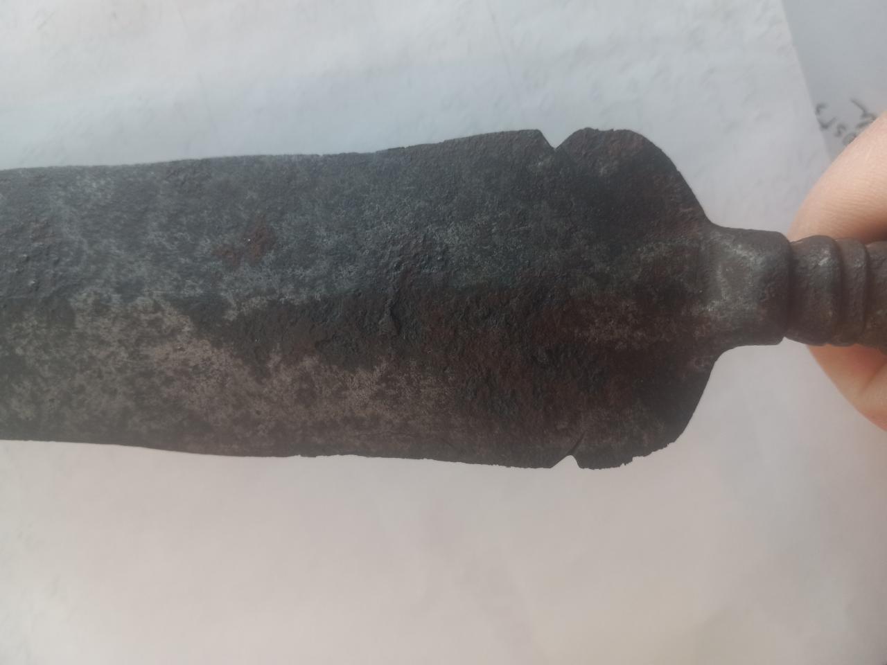 My guess is late 18th century. Found in Massachusetts 20 inches overall with a 15 inch blade. |