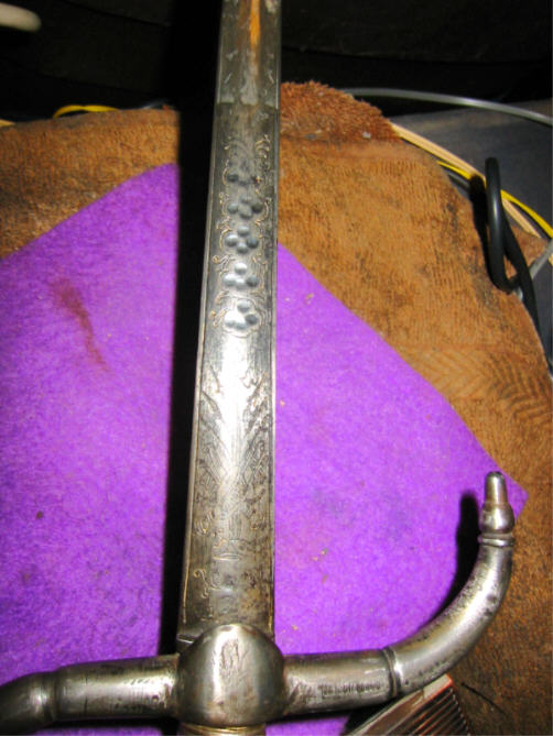 First of all, thanks to that machine-made groove, there was no need to add identifying marks as no-one else (i.e. Solingen) was producing that style. Second, until the late 1700s, when Klingenthal began producing and signing blades, there were virtually no (if any) smallsword blades marked by smiths, not English or German, so how can a lack of Shotley Bridge marks indicate that none were ever produced there. I did find two signed examples though: