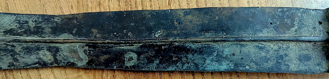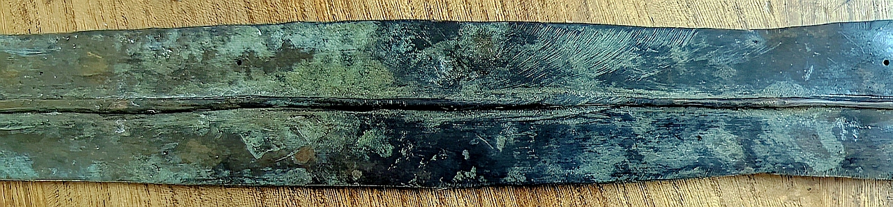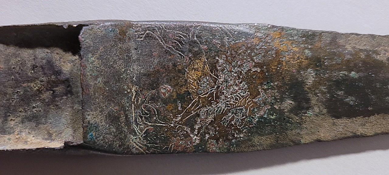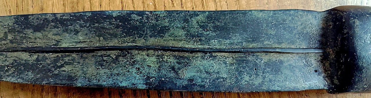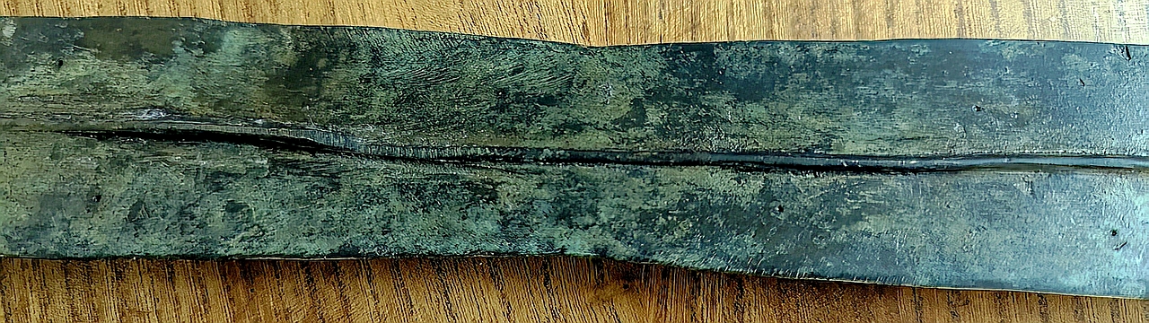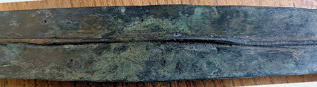 Here is the surface of a 3000 year old Luristan bronze dagger that clearly has seen some cleaning: |