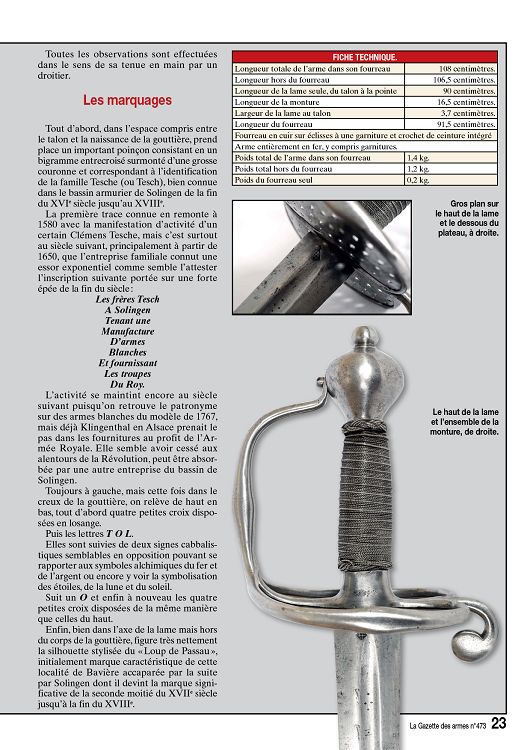 Below are screen shots I took of the article. To be honest, from what I read through Google Translate, it doesn't add much to the discussion either. Looking at their example, it also has a number of variations to the typical examples you see in the digital catalogue of the Dutch Army Museum (search for "Waalse degen").