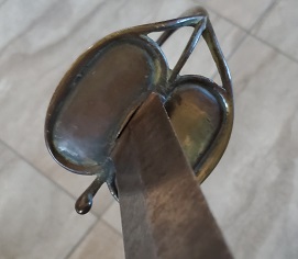 Furthermore, the pommel shape is off, and it's missing some of the finer details again. Plus, the point where the knuckle bow is joined to the pommel is recessed, something I haven't seen on any originals.