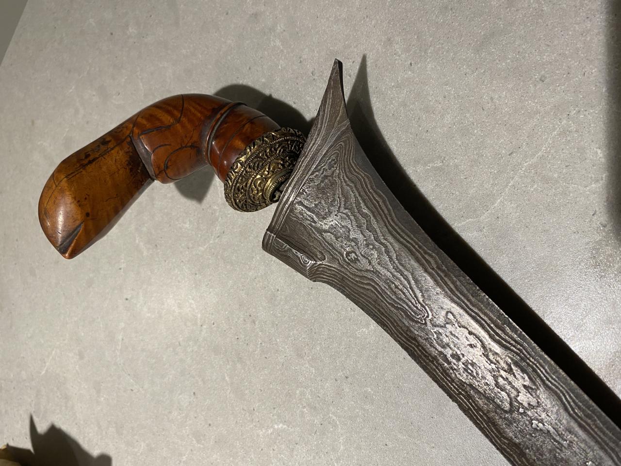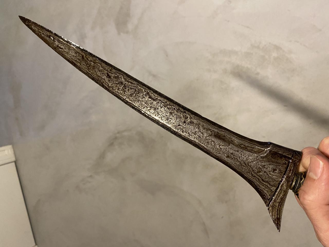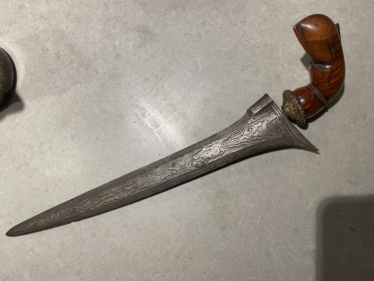 The blade is Bugis style, the age is probably second half 19th century. And there is a lot of supposition in that. It is merely an opinion. There are at least two types of opinion:- opinion that can be substantiated, opinion that cannot be substantiated. My opinion as above is of the second kind. |