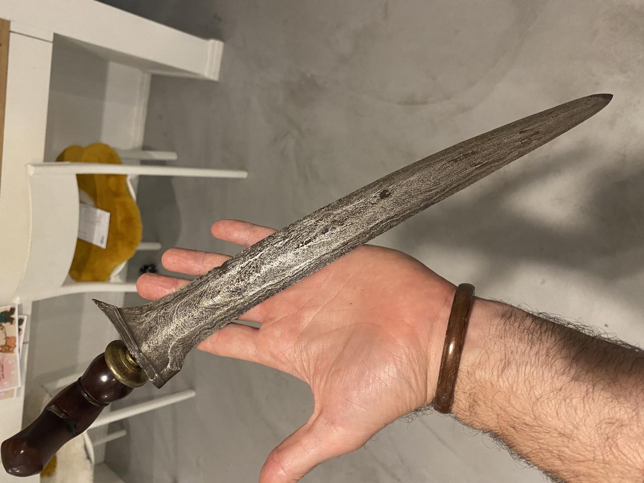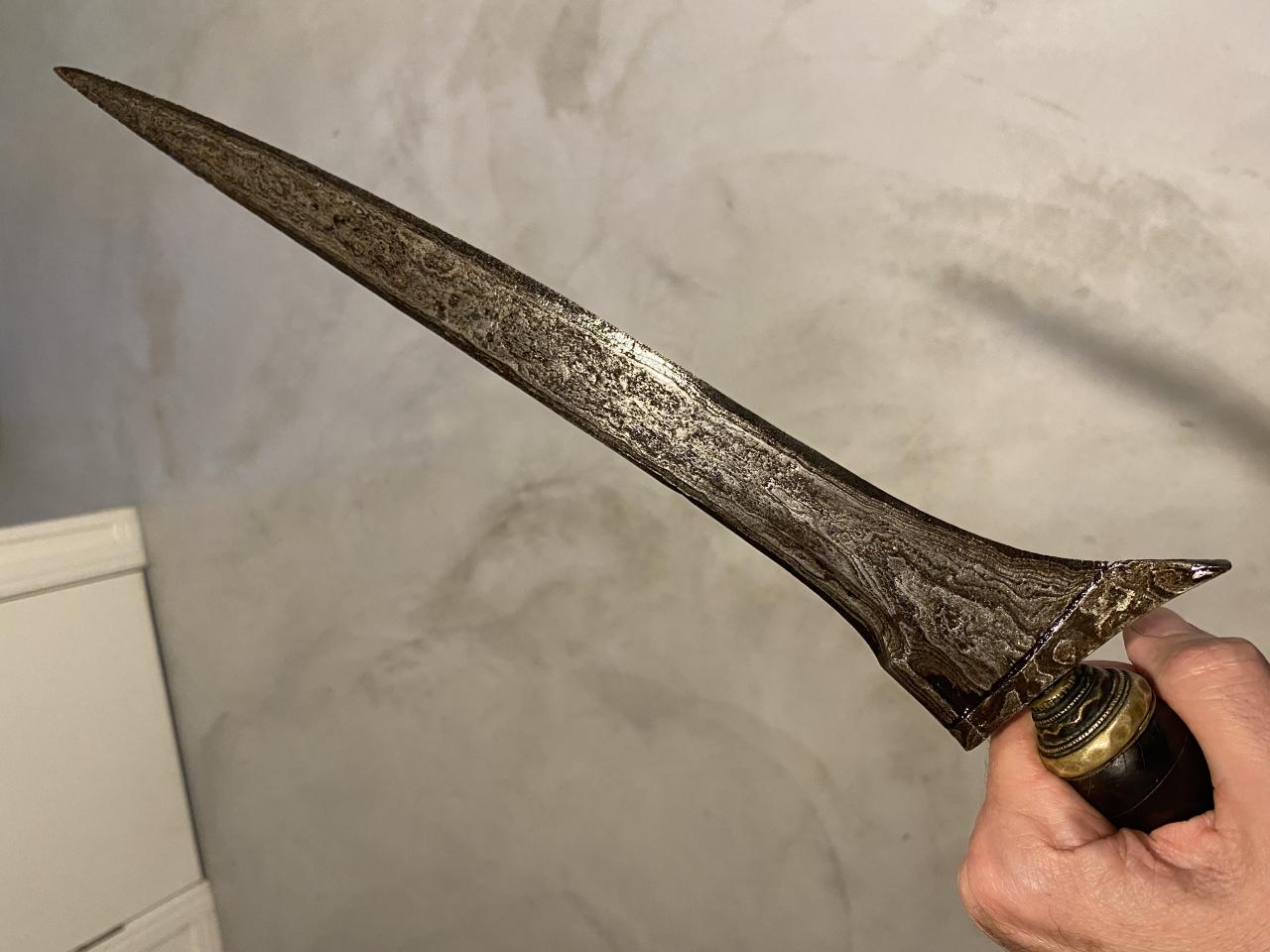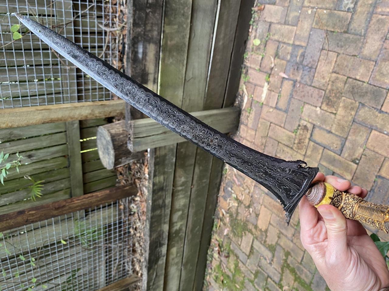 The blade is Bugis style, the age is probably second half 19th century. And there is a lot of supposition in that. It is merely an opinion. There are at least two types of opinion:- opinion that can be substantiated, opinion that cannot be substantiated. My opinion as above is of the second kind. |