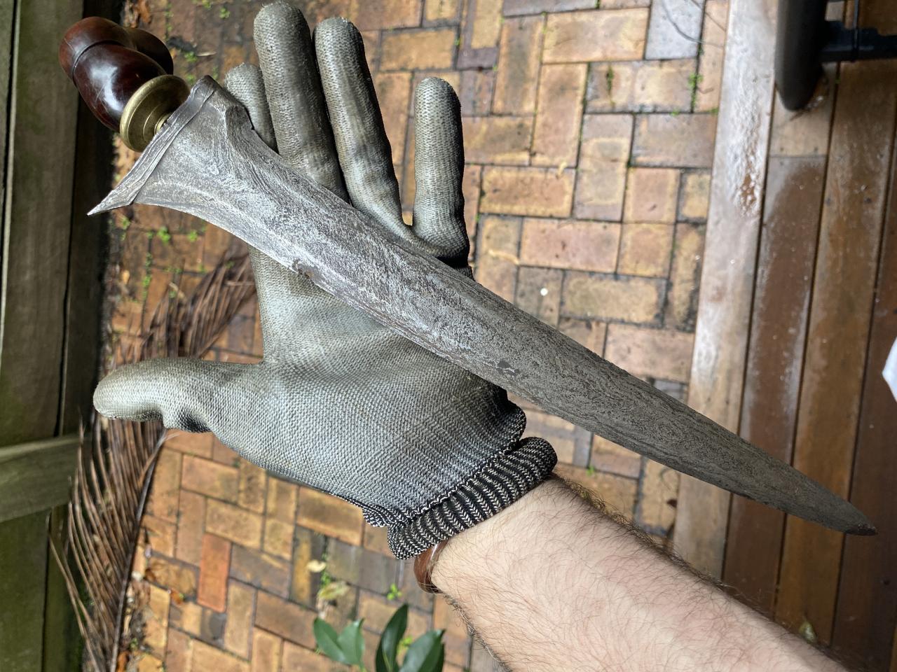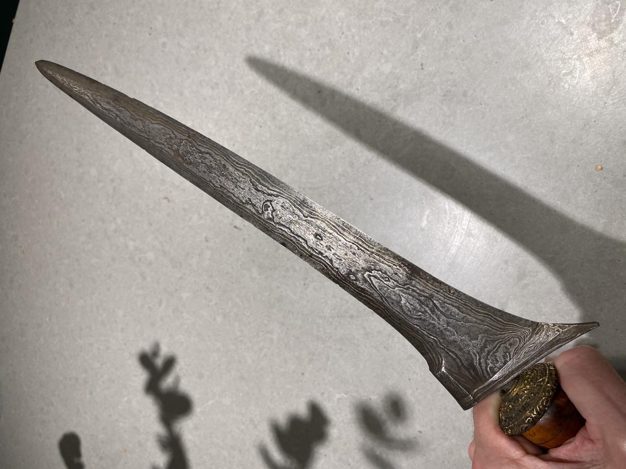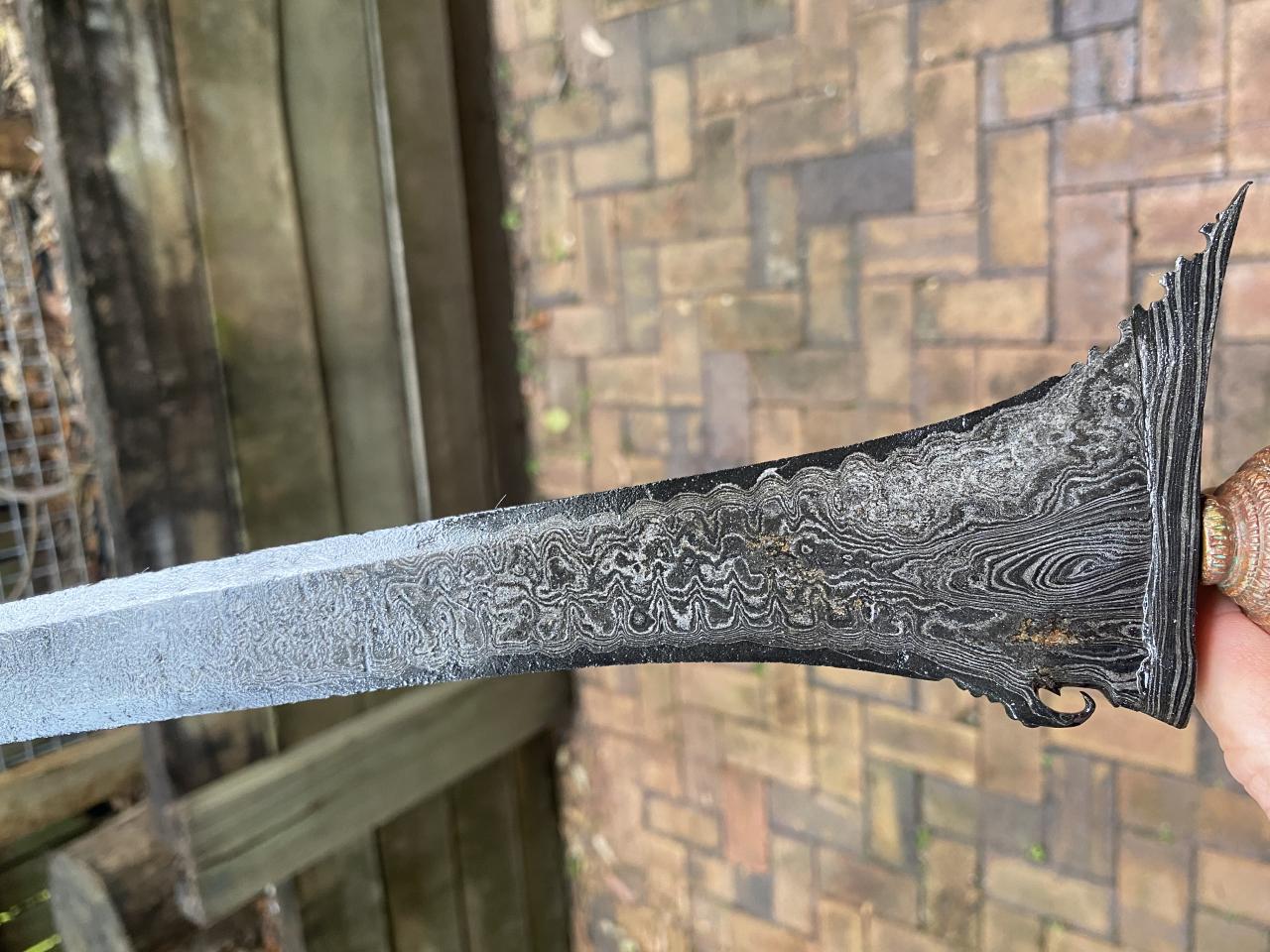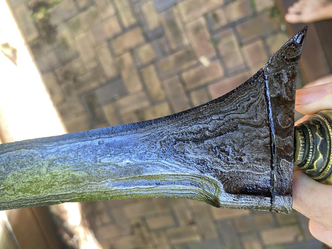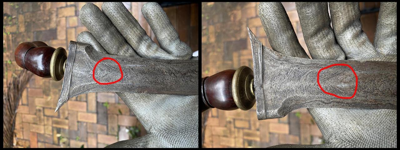 I quite like this blade Adam, if for no other reason the interesting reverse directions of the chevron feature in the pamor on each side of the blade. |