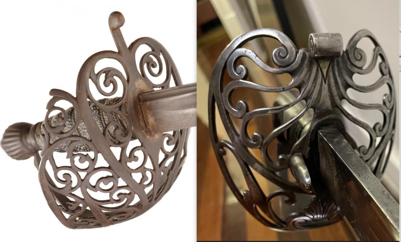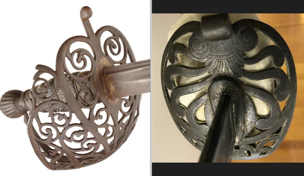 The evolution of the swords are covered by lettered authors, such as Dellar. On Facebook, Steve Goodyear has done a lot of the variety of evolution. https://www.facebook.com/groups/1402...0008637461346/ Another reason for a half basket is wear Cheers GC |