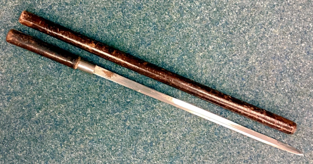 I have a 'two foot cane' -covered in brown leather. It has a nice stiletto blade inside it.