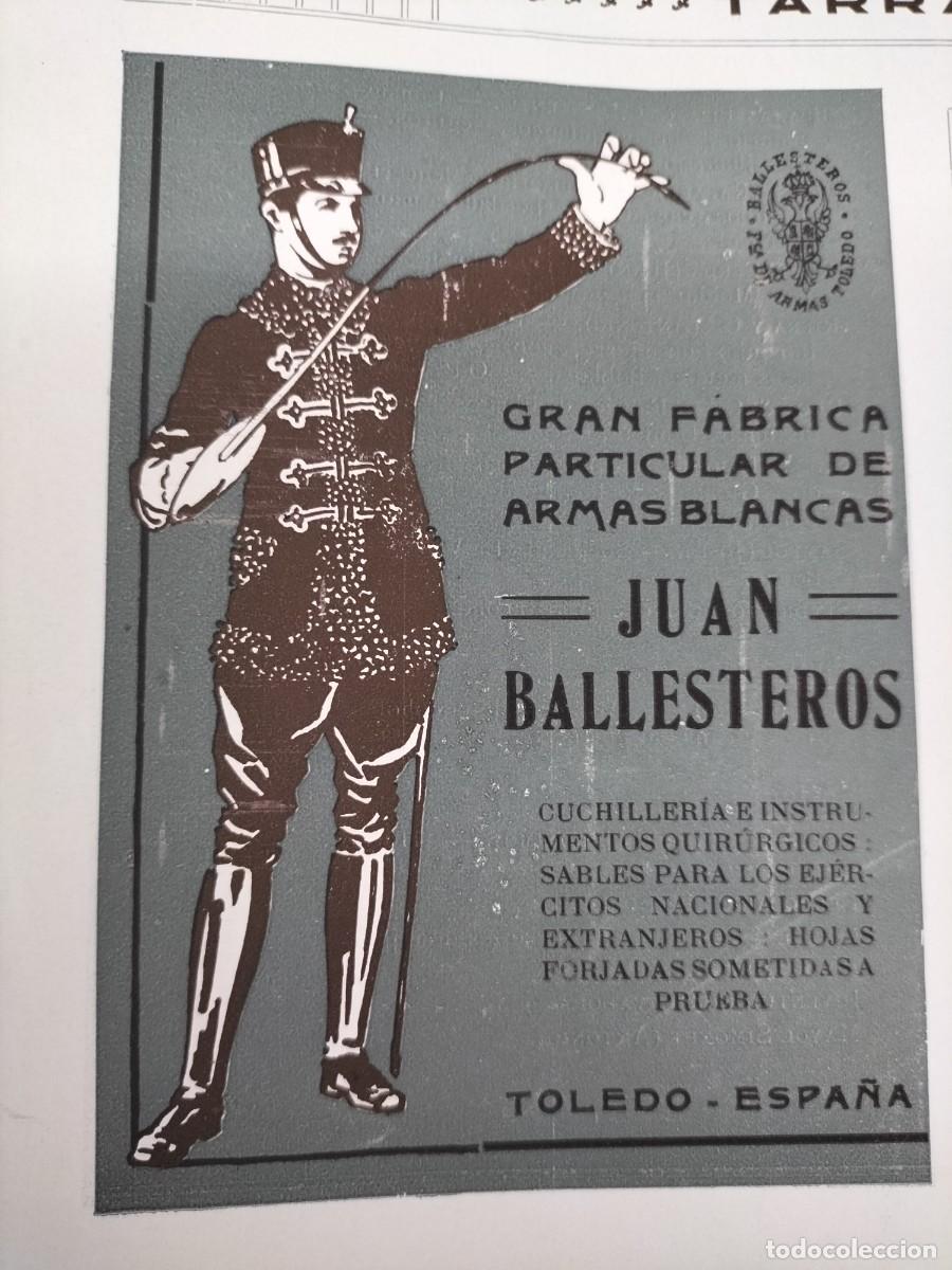 There was a Juan Ballesteros in 1907, who had a shop in Toledo selling swords from the Fabrica and damascened works. Maybe go to Portuguese army archives and find the contracts for weapon adquisitions. Something I am thinking just now is that maybe Ballesteros arranged with the Fabrica de Toledo to make the swords there, but produced under his own mark. There is no an easy explanation to have instalations big enough to supply the Portuguese army dissapearing in no time. One of the swords he made has the same blade as the model called "de tirantes" for Spanish cavalry officers. Another thing is that Juan Ballesteros (1855 - 1933) did not work on his own until 1899, so his factory cannot be earlier than that. The advertisement below is from 1916. Last edited by midelburgo; 30th October 2025 at 06:27 PM. |