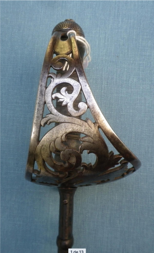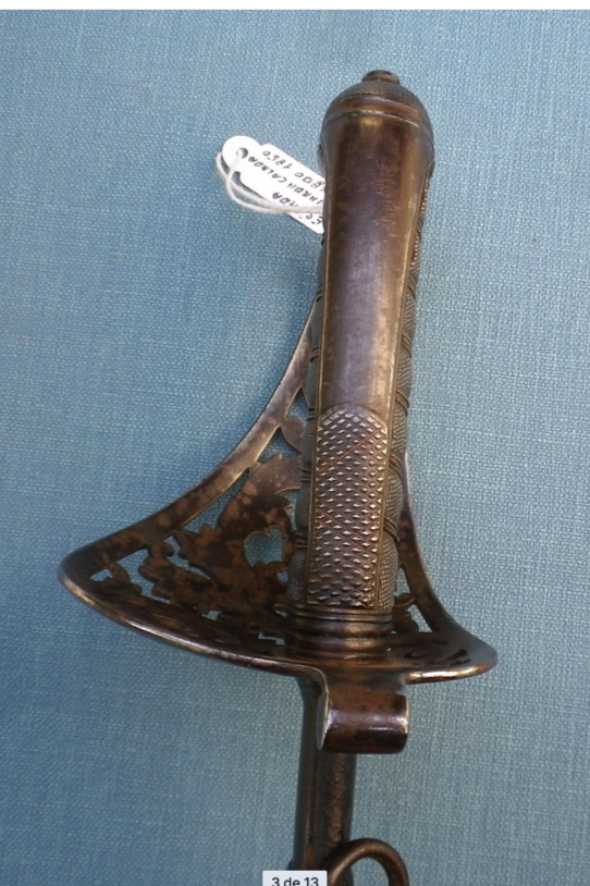 In the 1840s, almost all the Spanish cavalry officers would use the brass perforated shells, that differed in the design and density between the manufacturers. The three branched hilt continued being used by the artillery officers. In the 1860 blades with a minimum of curvature were made so it became unclear if they were intended for line cavalry or light cavalry.