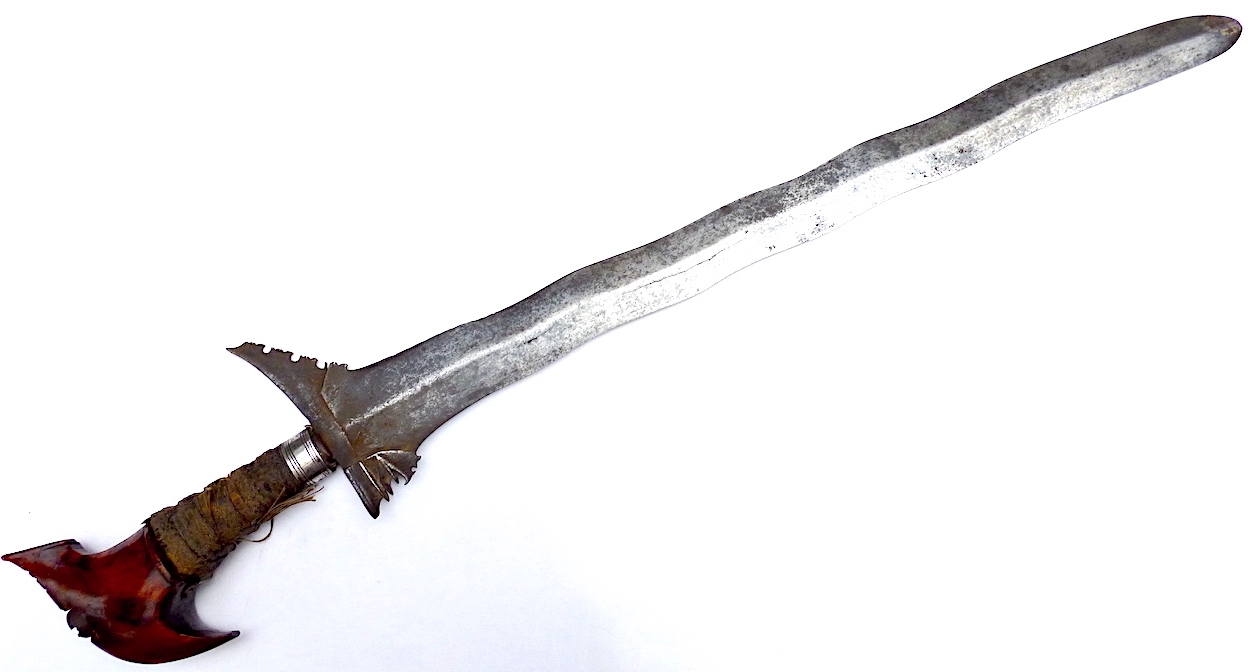 At one time the sword had two asang asang, but only the support strips on either side of the hilt remain. Perhaps the stirrups were lost during the repair of the tang.