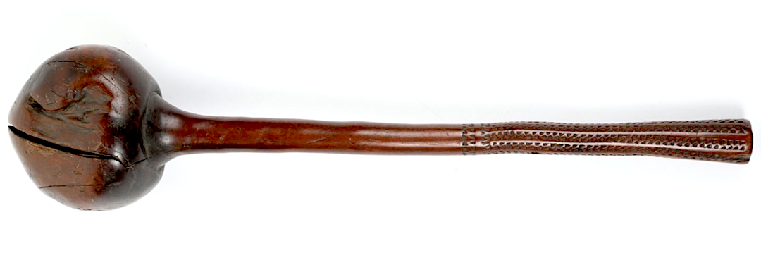 I am a collector of clubs (among many other things!) and for a long time I've been trying to identify the old, used and nicely patinated club below. I have been assured it is not Oceanic and there is disagreement among experts whether it is from Africa - it isn't Zula anyhow. ChatGPT analysed the style of carving on the grip section of the handle and insists it is from SE Asia, however, I have not found any mention on the Internet of ball-headed clubs from that region (but the mentions may be in Dutch). Does anyone recognise this type of club? Note, that the rings on the handle are hand carved - not turned on a lathe, and that the club is 54.5 cm long. Thanks!