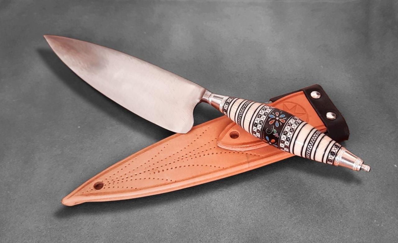 It is interesting that the author refers to British contact, and hence the transliteration of the English word "knife" to naife to describe the Canary Island form. I believe this British contact related to trips made back and forth between England and India during the 19th C and earlier. British ships, both merchant and passenger, would stop at the Canary Islands for provisions before proceeding down the African coast and around the Cape of Good Hope into the Indian Ocean. ------------------------- The naife is, without a doubt, the star product of Canarian craftsmanship. This knife has been for centuries a basic tool for the farmer and the Canarian rancher. Today, it has become a valued decorative element from which exquisite pieces longed for by the best collectors in the world are made. History of this work of craftsmanship On the history and origins of the Canarian knife much has been said, but little has been studied and written. The most accepted theory is that the naife is a knife of Albacete origin modified by local artisans to meet the needs and tastes of the Canarian man dedicated to the work of the earth and, in particular, of the banana trees. Its name is clearly derived from the word used in English to refer to a knife, "knife", the Canarian English naife would only have the name. This is because he has not found any piece of the British knife industry that can be related to the unique morphology of the Canarian knife. Other theories relate the Canarian knife to Berber culture and the Canarian Guanches or Aboriginals. Some specialists claimed that the Canarian knife came from North Africa, but this theory has been losing weight in recent years. The Canarian masters of the 21st century keep alive an ancestral tradition that has adapted to the new times without losing their value and cultural roots. The workshop, materials and tools have practically not changed, but the final product is used more as a decorative element, either in the form of an abbreads or miniatures, than as a tillage instrument. The naife: how this work of craftsmanship is manufactured El naife or Canarian knife is composed of three distinct parts. A large blade, pointed but rounded and wide in shape at the opposite end, which extends into a piece called a spike [tang], which is where the round section handle, which is called the cape [hilt], is embedded. In the knives made for work in the field, hardened steel blades are used, while in purely decorative ones, silver or alpaca [German silver] leaves are used. The materials for their elaboration The materials used for the handles are the ram’s, goat, and cow’s horn, ebony, ivory, and metals such as silver, steel or alpaca. The material chosen is prepared in circular rings with different diameter that are subsequently joined to give the handle its characteristic round shape. In these rings are made some incisions and purely decorative inlays that form the plant, chess, or geometric figures chosen by the artisan. The elaboration of the naife The elaboration of the naife is divided into two parts, on the one hand, the manufacture of the sheet [blade], and on the other, the elaboration of the handle. With the exception of some master knifemen who manufacture the complete knife in their workshop, it is usually that the blade is made by blacksmiths while the knifemakers are dedicated exclusively to the corporal [hilt]. The process of elaboration and ornamentation of the cape is very complex, since it is necessary to prepare circular pieces of different diameter to give it its characteristic circular shape, assemble the metal washers that join them, and make the curious inlays that make unique each artisan Canarian knife. If you want to know more about the instruments and the Canarian craftsmanship we leave below several links that may be of your interest: The legacy of traditional Canarian ceramics; Timple, know the history of the Canarian instrument; The Canarian draft, insignia of island crafts. |