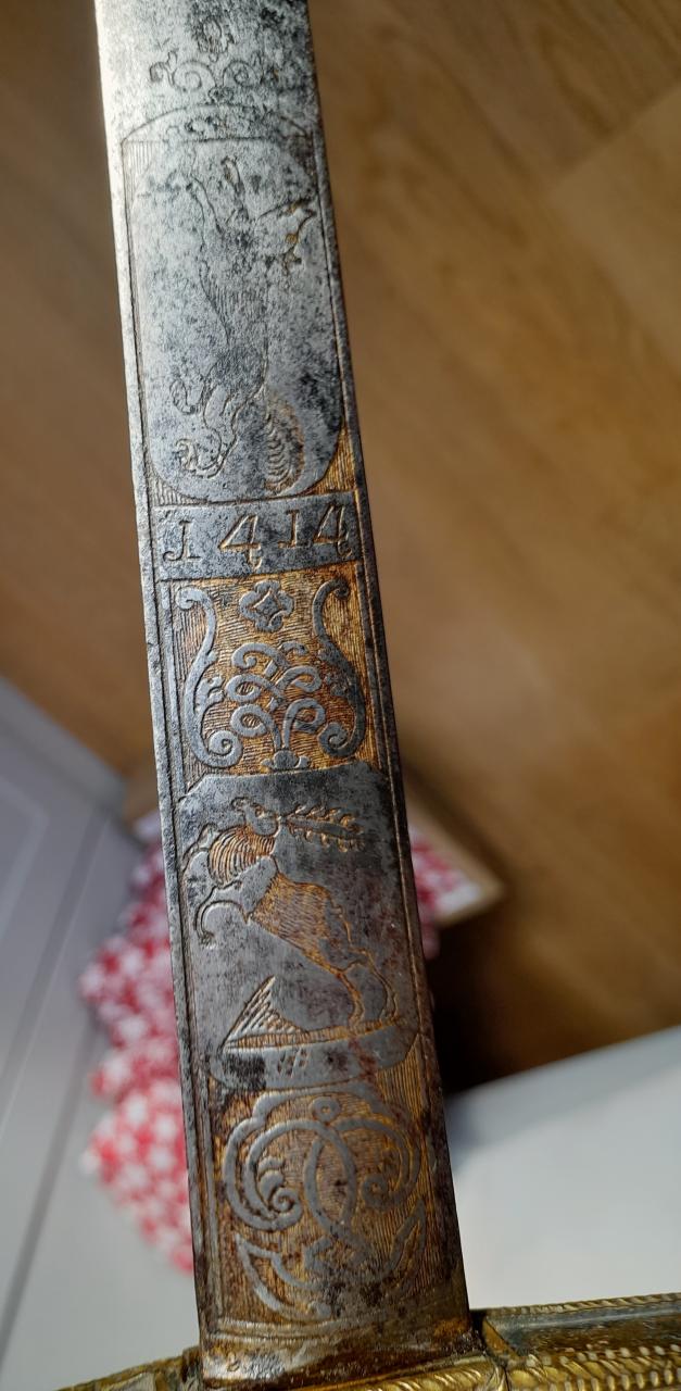If it was a theatrical sword, there was no need for the sword blade to be so beautifully and finely engraved!It is possible that it is a ceremonial sword for a dignitary, with the year 1414 engraved on it, commemorating an event.