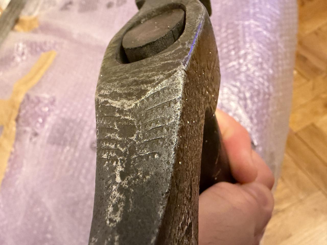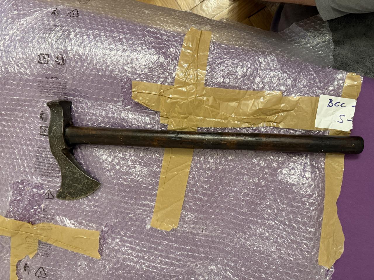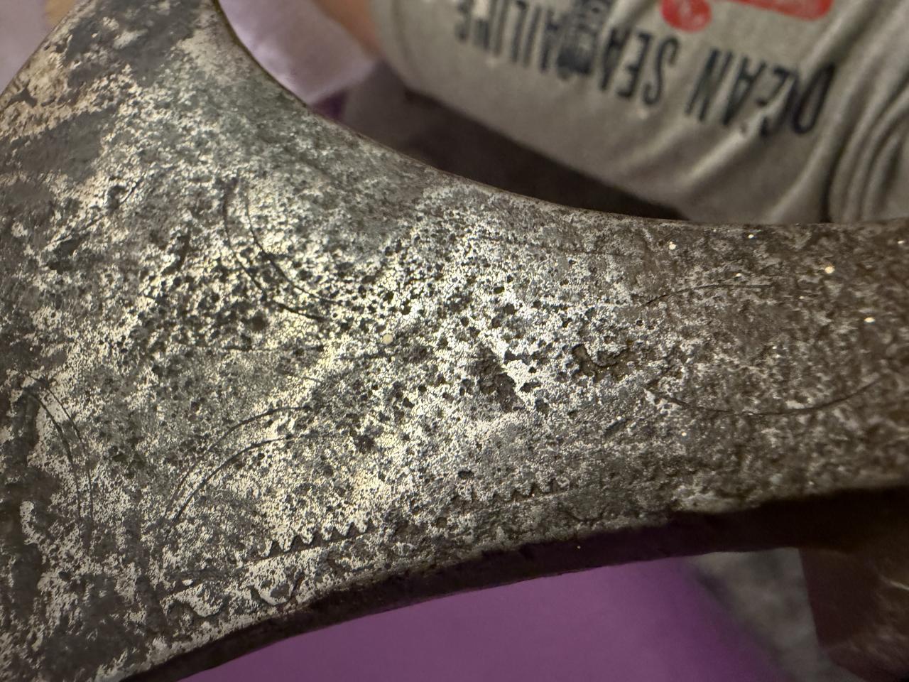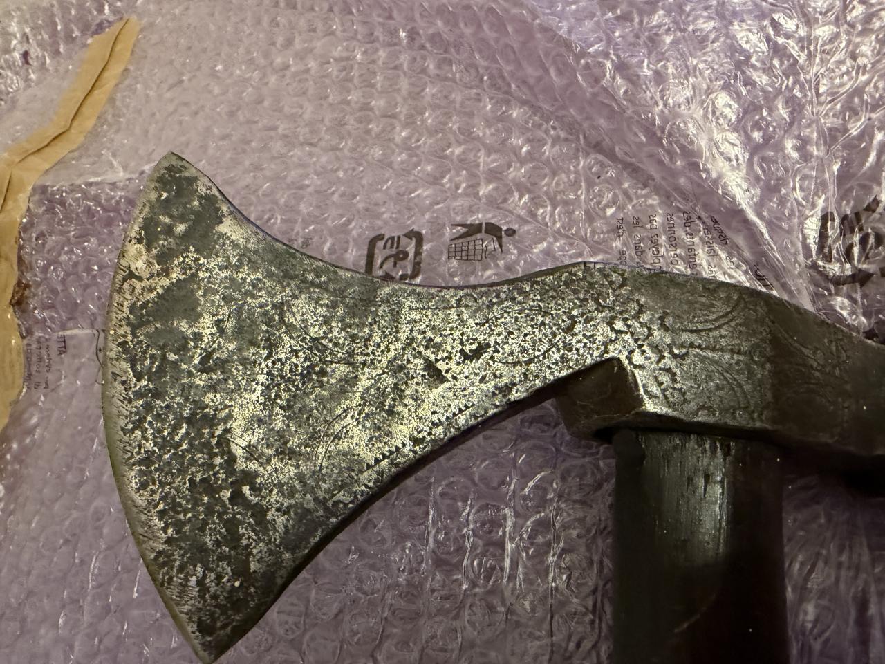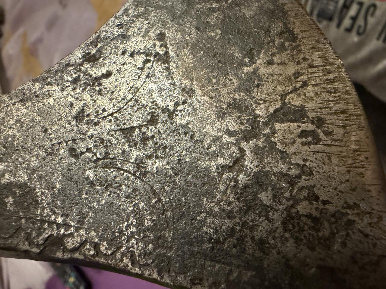I found in Milan Praunsperger book Weapons of old Croats similar axe it is caled Balta, it looks similar. Handle of the axe is definetly not original from the period, axe is very well made, tempered, it has engrawings, some of them looks like Italian marks ferrara used, arches with sun. It was rely nicely decorated but that deteriated over time. If someone knows origin or something about it? |