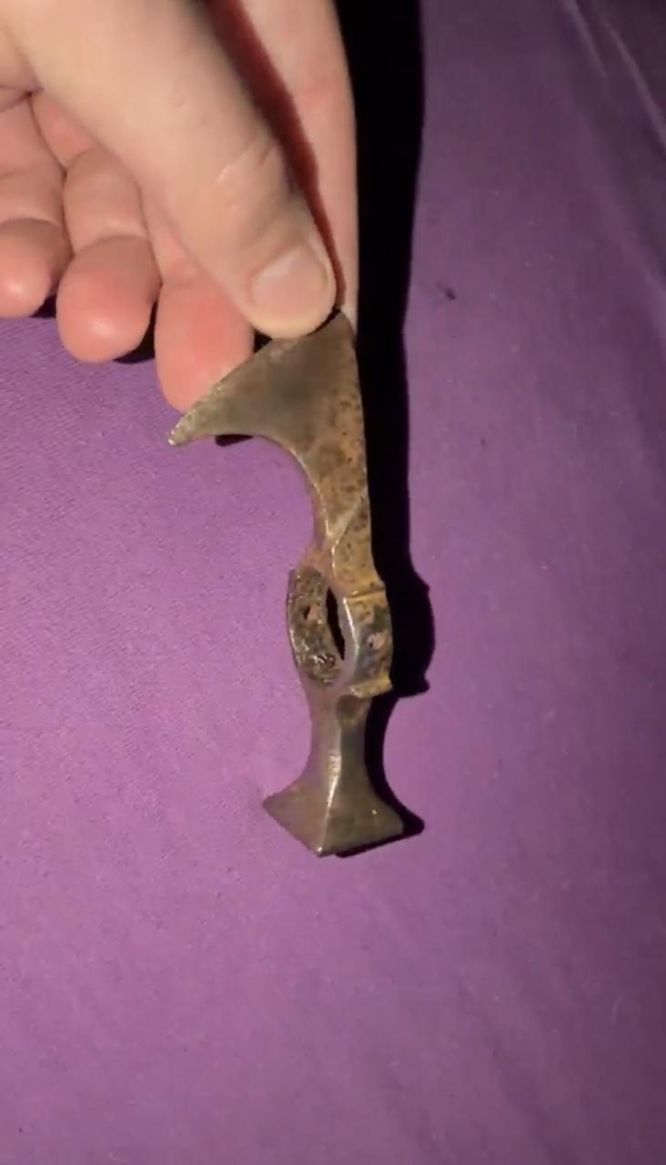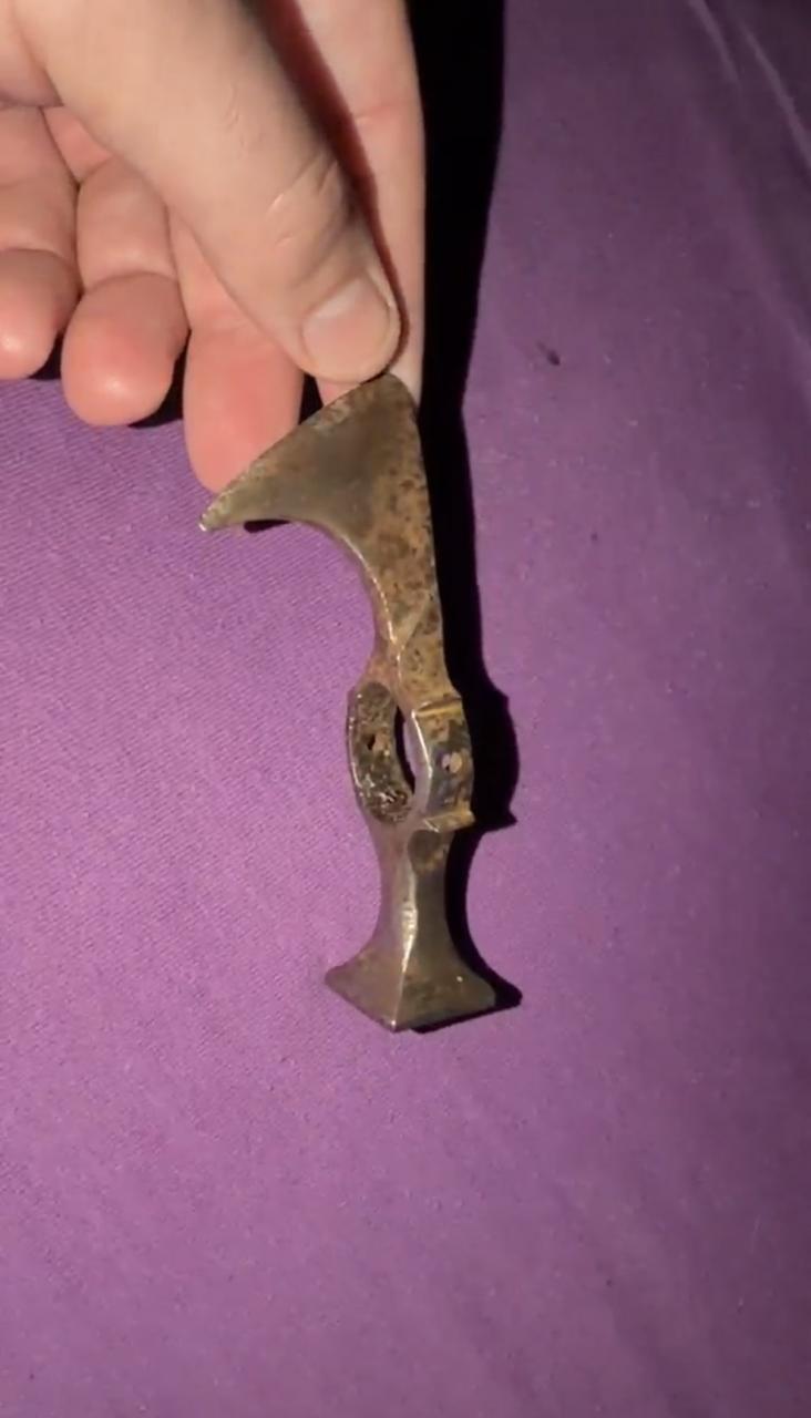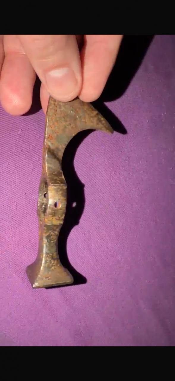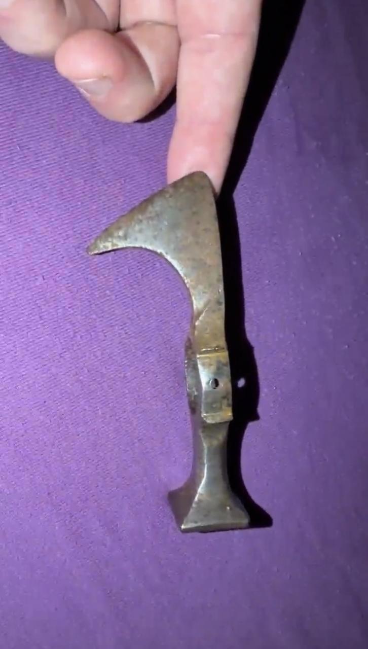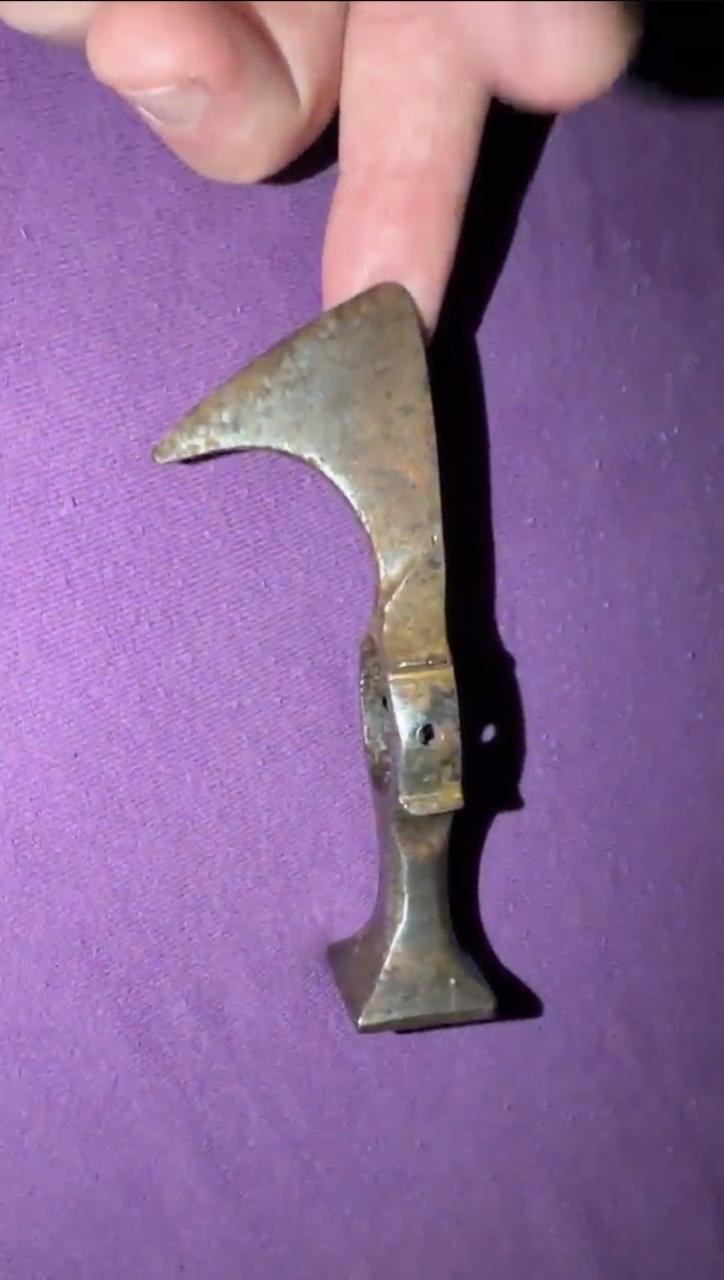 I never heard about fokos before, it does look very used, and it is very nice axe. With it i also acquired another one, i think it is chekn or something like that name, i saw several similar looking axes online, bit somebody cleaned it to the shining metal, inside of the shaft ring it is a old rust and patina, but outside was cleaned on my take is metal brush or some high speed polishing device, and someone driled holes on the sides. It is rather small axe, i think it is more some mix between spike and axe, for piercing helmets. But it isnt anything special, becouse somebody masacreted it with cleaning and driling holes, and allso it doesent have signs of wear or heavy use, and temeper of the point could be higher for piercing capabilities. Judging by the inner patina it is old, but. |