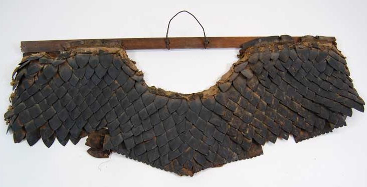 These types of scaled armor, in these cases of iron rather than leather, appear to have been from Spanish colonial provenance but had occasionally remained in use by Native American tribes for generations. In fact with Comanches there are two recorded instances of this, both with Comanche chiefs, one in 1780s, the other with the chief known as 'Iron Shirt' who was finally brought down by a shot from a 'buffalo rifle' in 1858 in Texas.