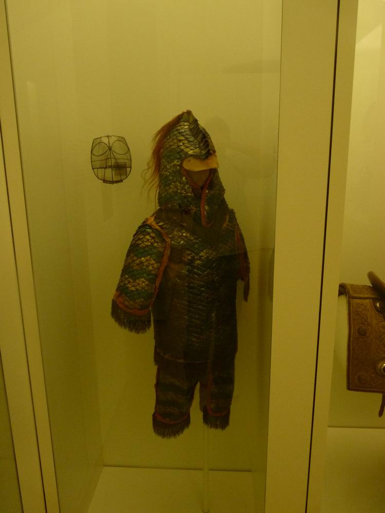 While I sadly did not take a picture of the museum label, from what I recall from close to 10 years ago when I took the picture is that this armor was from Mexico, and was parade in function. I could stand to be corrected on this.