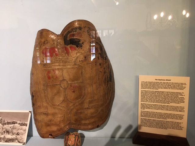 Jim, here is another adarga, currently exhibited in the Carmel Mission in Carmel, CA, which belonged to a soldier in Portola's expedition. It is interesting to see they were still used in the New World in the second half of the 18th century.