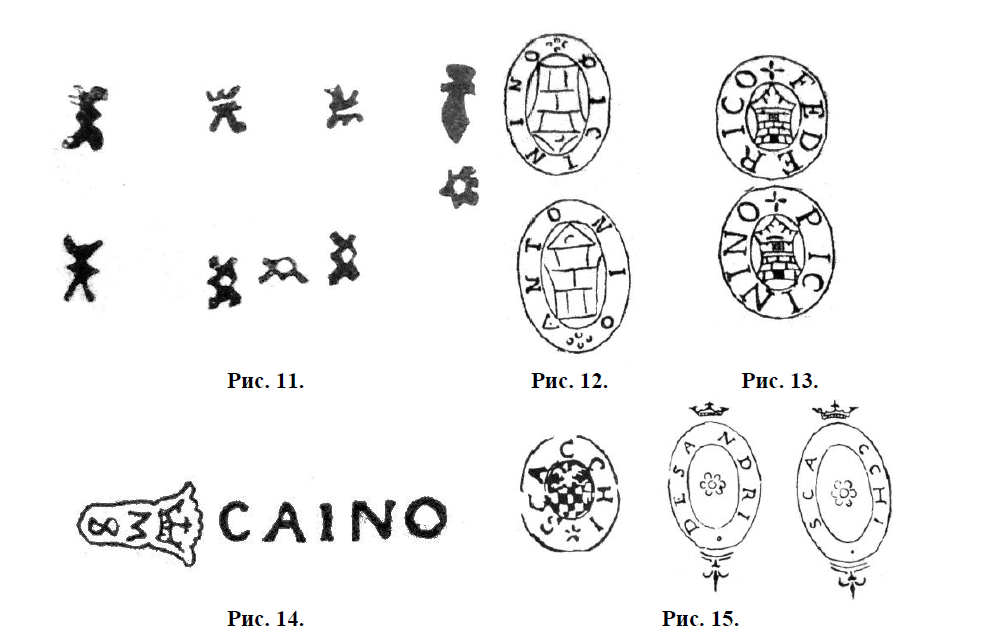 We discussed these hallmarks: http://www.vikingsword.com/vb/showthread.php?t=30639 JOURNAL OF THE SOCIETY OF HISTORICAL WEAPONS HISTORICAL WEAPONS No. 1 2015 EDUARD von LENZ A FEW WORDS ABOUT ANCIENT COLD WEAPONS Page 150-151 IV. Italian Masters. "Gurda". The Italian masters, in contrast to the Solingen and German masters in general, comparatively rarely branded their blades, and if they did, they usually used small marks of a simple form (Fig. 11), which, as far as is known, belonged to the workshops of the cities of Genoa, Brescia, Milan and Belluno and did not constitute the personal property of certain masters. |