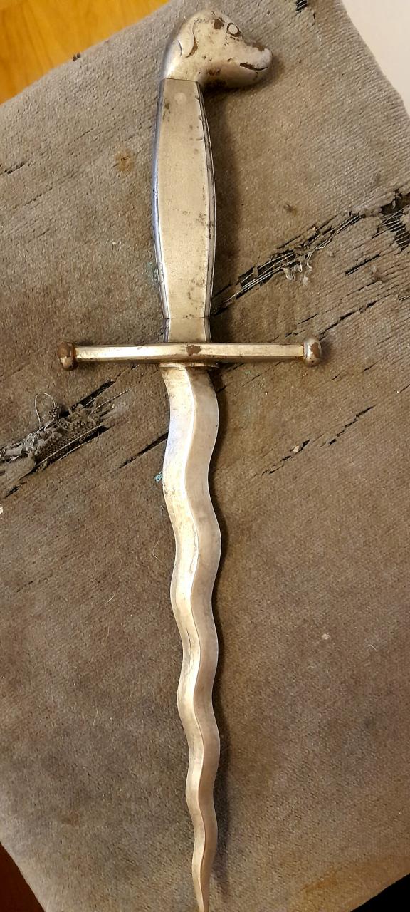 Here we focus on historic weapons for discussion, but with the potential character of this dagger seemingly quite modern, perhaps early 20th c. and possibly relegated to 'fantasy' type items or at best theatrical or fraternal, it may be that readers might hesitate in commenting.